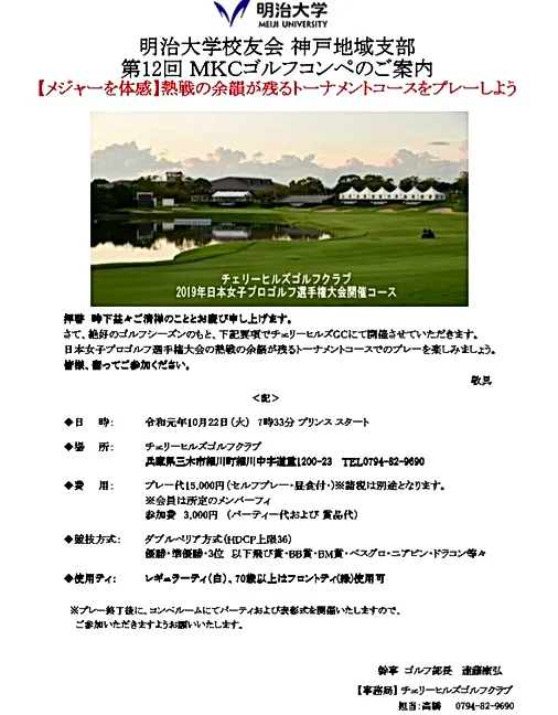 2019年10月22日 第12回 MKCゴルフコンペのご案内